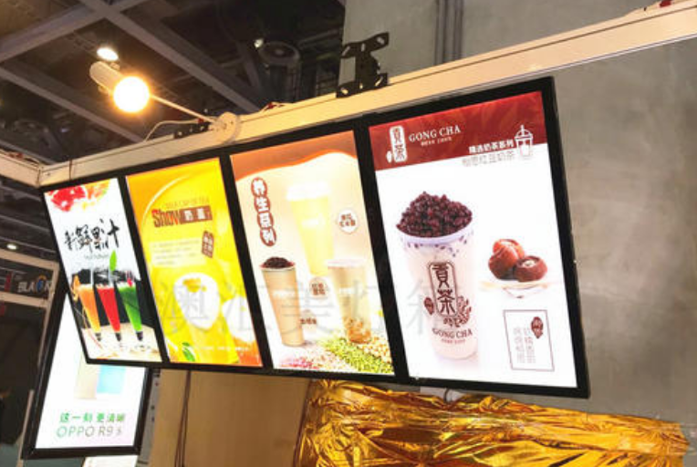 點餐燈箱就應時代需求產生了,點餐燈箱外殼采用進口亞克力導光板,光的散色效果特別的好,使得產品展示色彩飽和,更能引起顧客的食欲,使得顧客感覺到高大上的感覺,及大的方便了使用。內置LED光源源自臺灣晶元,綠色節能,節能效果是傳統燈箱的2倍以上,引進自然光系統,使得燈光更加的柔和,更貼近人體視覺效果。而點餐燈箱可以將店鋪的產品簡單明了的展示在點餐燈箱上面,使得顧客壹進門就能了解酒店的菜品,更貼近顧客,使得顧客體驗效果更好。由于點餐燈箱是懸掛式的,節省了店鋪的內部空間。
